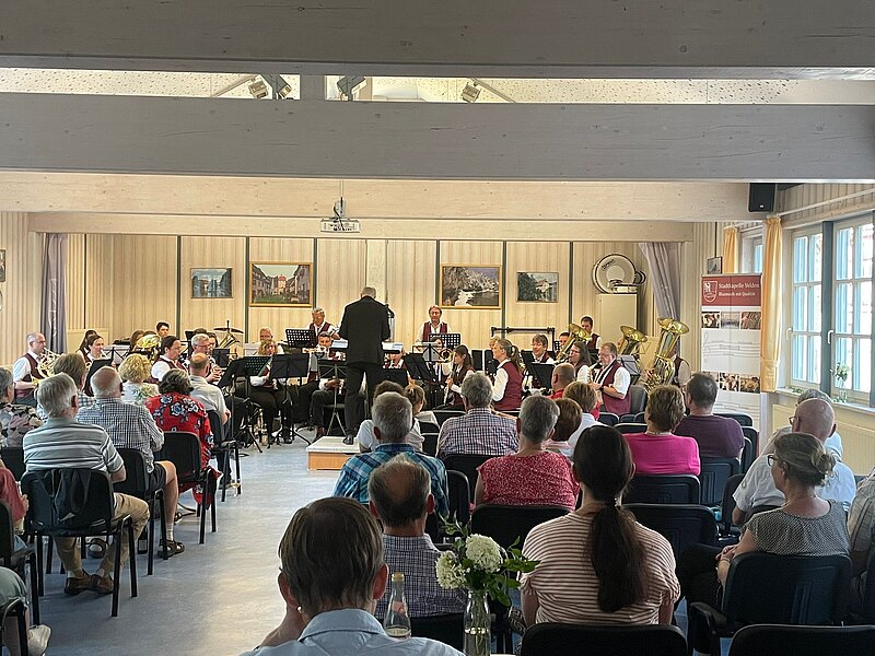 Im Rahmen eines kleinen Konzerts präsentierte die Stadtkapelle in der Musikhalle zwei anspruchsvolle Werke: „Postcards from Singapore“ von Philip Sparke und „ARCUS“ von Thiemo Kraas. Beide Stücke forderten Musikerinnen und Musiker auf unterschiedlichste Weise heraus und boten gleichzeitig Gelegenheit, die eigene musikalische Entwicklung unter Beweis zu stellen.